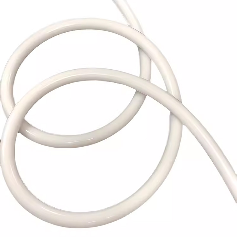 This circular neon flex led light makes 360 degrees of illumination possible with two led strips being placed back-to-back in tubing, totally without any dark areas. Neon led tube has high light transmittance so it can provide excellent luminous effect, combining soft glow and high brightness together at the same time.